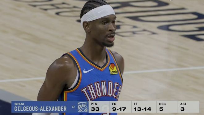 SGA单场已五次50+,追平威少并列雷霆队史第一
